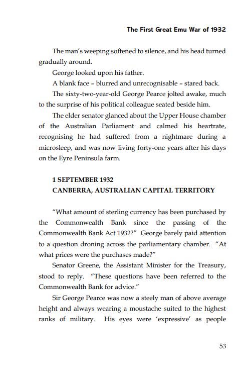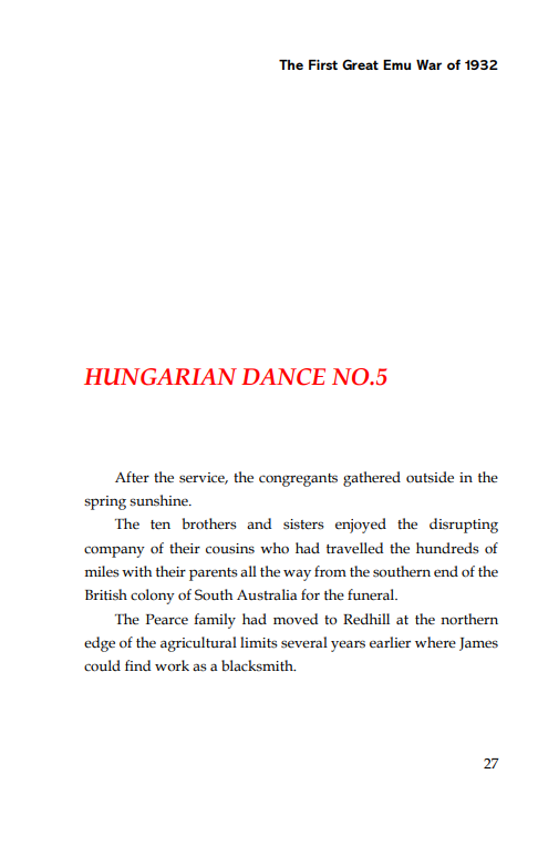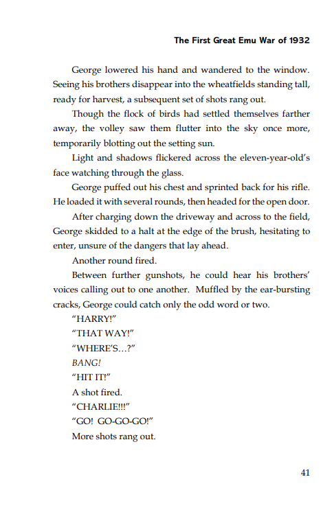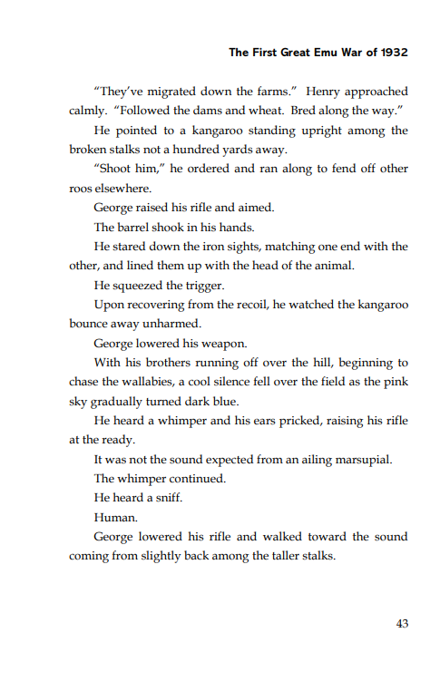 Opening - The First Great Emu War of 1932D. M. Wright2 days ago1 min readUpdated: 1 day agoRated NaN out of 5 stars.BLURB >>Dive into the details of the bookBUY >>See Original Edition on AmazonSee Spellbound Edition on AmazonSee Workbench Edition on AmazonTHE OPENING >>BLURB >>Dive into the details of the bookBUY >>See Original Edition on AmazonSee Spellbound Edition on AmazonSee Workbench Edition on Amazon
